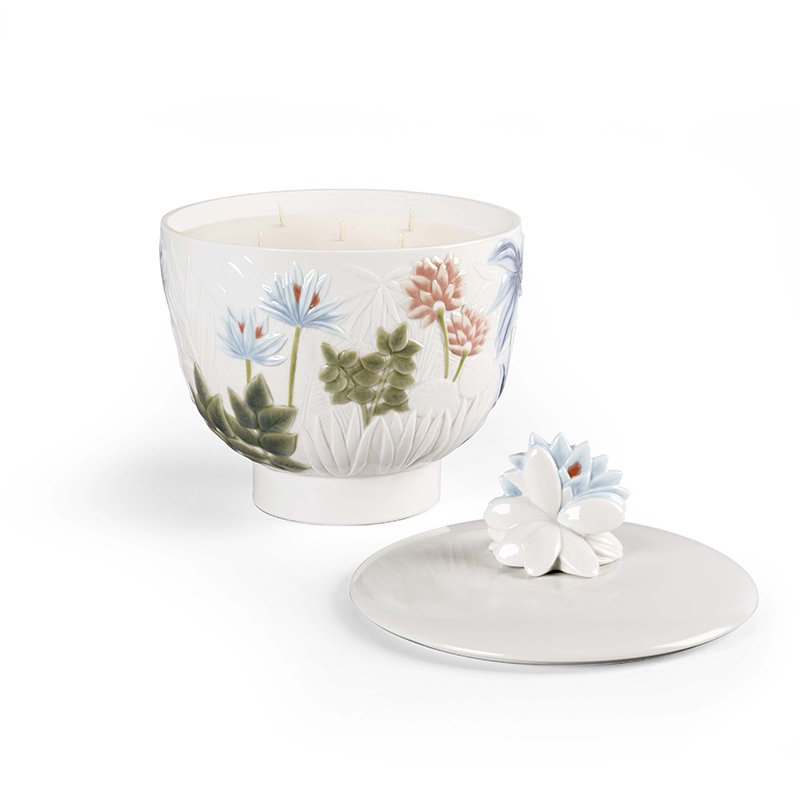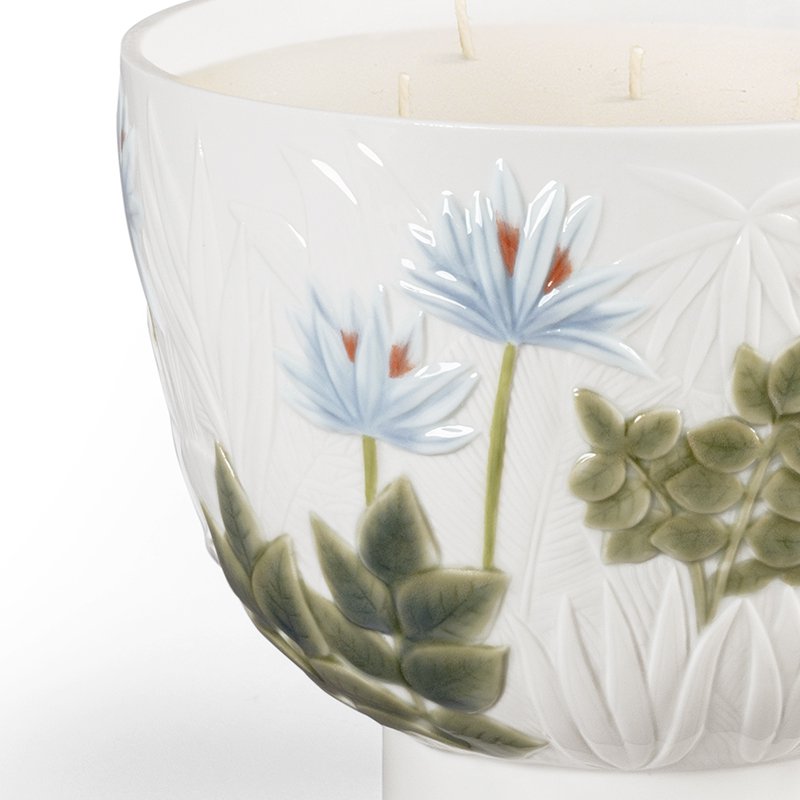 この美しい磁器のキャンドルホルダーの装飾は、フランスの高名な芸術家、アンリ・ルソーの作品、そして彼の自然を描く独特の手法から発想を得ています。