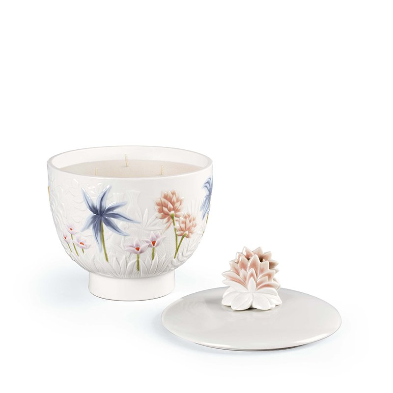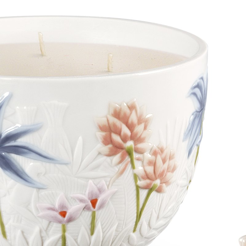 この美しい磁器のキャンドルホルダーの装飾は、フランスの高名な芸術家、アンリ・ルソーの作品、そして彼の自然を描く独特の手法から発想を得ています。