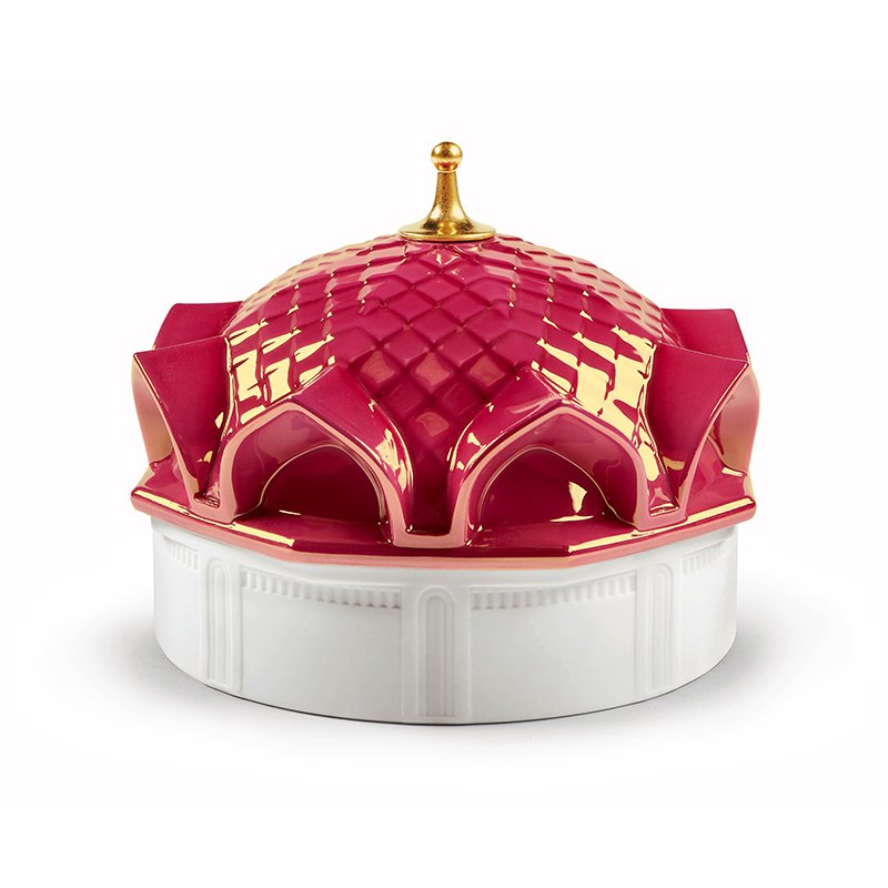 蓋は様々なバリエーションを持つ光沢のある赤色で仕上げ。 先端は金色に輝やき、ベース部分は透光性の磁器を用い、美しいレリーフが施されています。