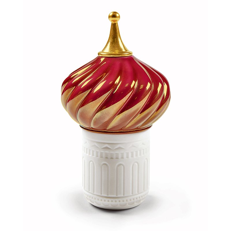 蓋は様々なバリエーションを持つ光沢のある赤色で仕上げ。 先端は金色に輝やき、ベース部分は透光性の磁器を用い、美しいレリーフが施されています。