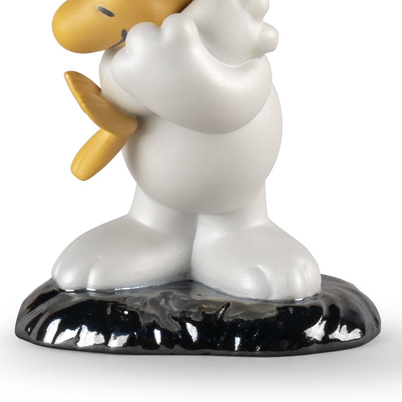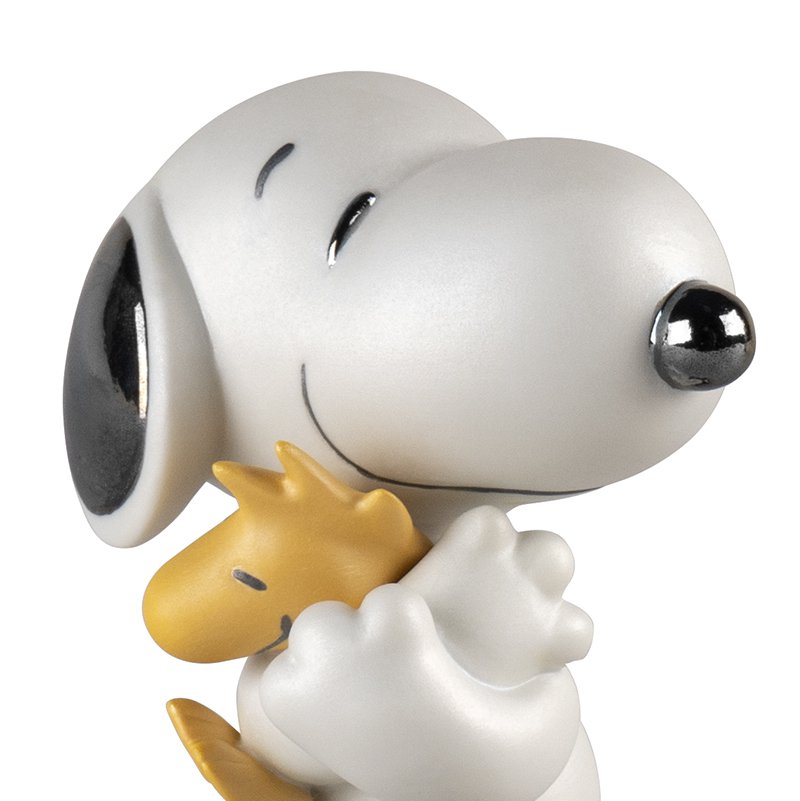 スヌーピーが親友のウッドストックを大切そうに胸の中に抱いている姿をこの作品で表現しました。つやのあるポーセリンとマットポーセリンを合わせ、仕上げにパール効果が特徴です。