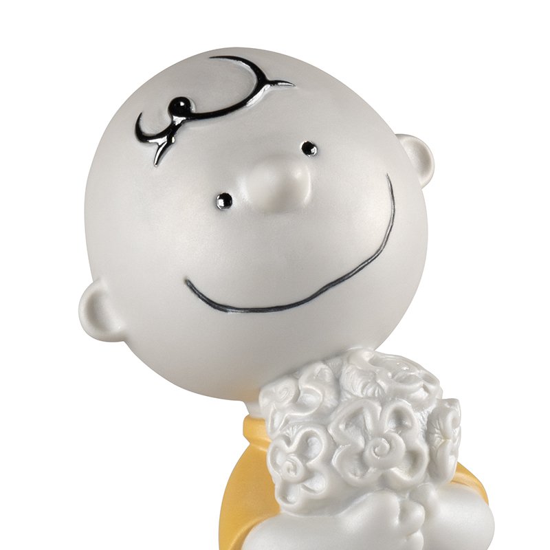 チャーリーブラウンはスヌーピーの飼い主で、丸い顔、おでこに前髪の可愛い男の子。こちらはチャーリーがブーケを持ったモデルです。つやのあるポーセリンとマットポーセリンを合わせ仕上げにパール効果が特徴です。