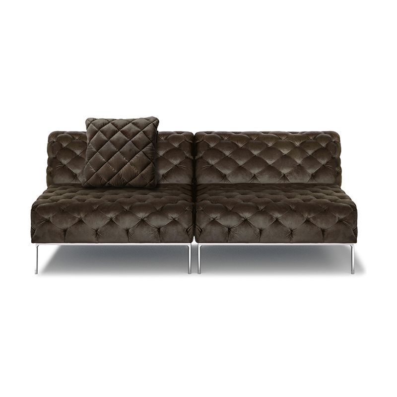 リズミカルにステッチ(タフティング加工)を施したクラシックなチェスターフィールド調のソファを、モダンにアレンジしたデザインです。
