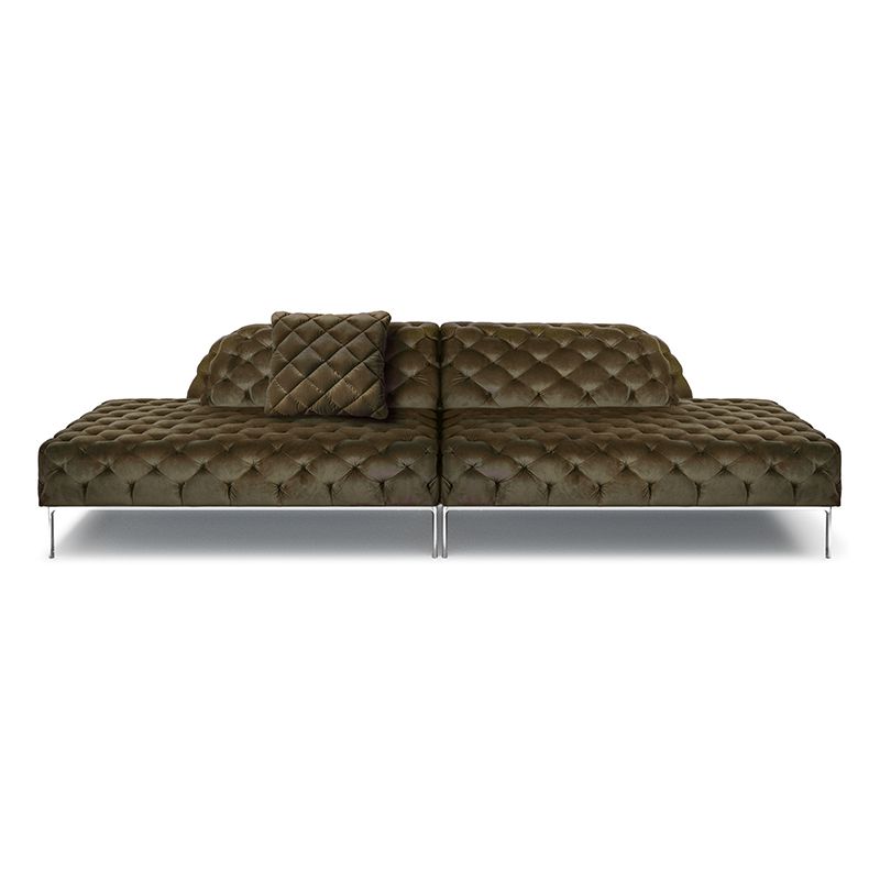 リズミカルにステッチ(タフティング加工)を施したクラシックなチェスターフィールド調のソファを、モダンにアレンジしたデザインです。