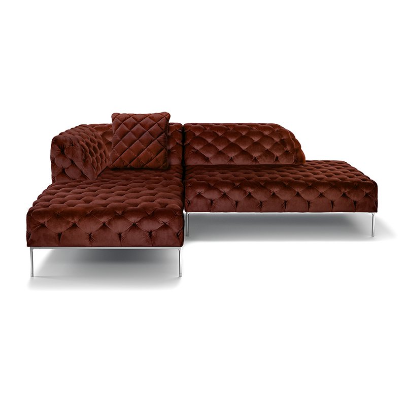リズミカルにステッチ(タフティング加工)を施したクラシックなチェスターフィールド調のソファを、モダンにアレンジしたデザインです。