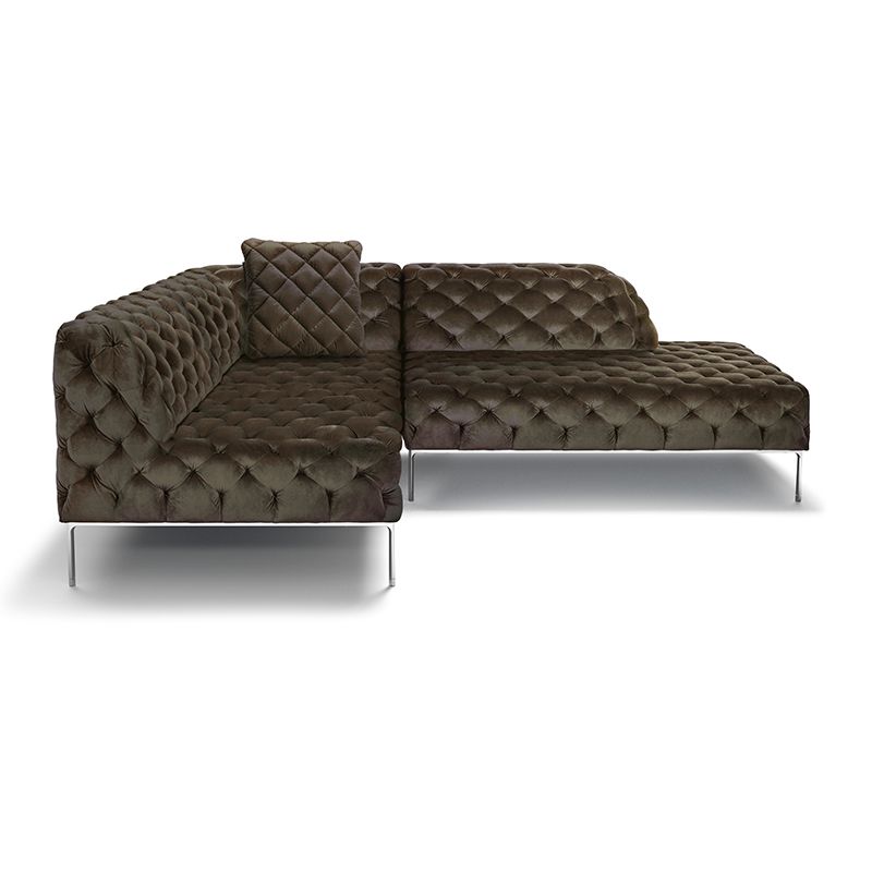 リズミカルにステッチ(タフティング加工)を施したクラシックなチェスターフィールド調のソファを、モダンにアレンジしたデザインです。