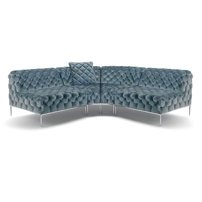 リズミカルにステッチ(タフティング加工)を施したクラシックなチェスターフィールド調のソファを、モダンにアレンジしたデザインです。