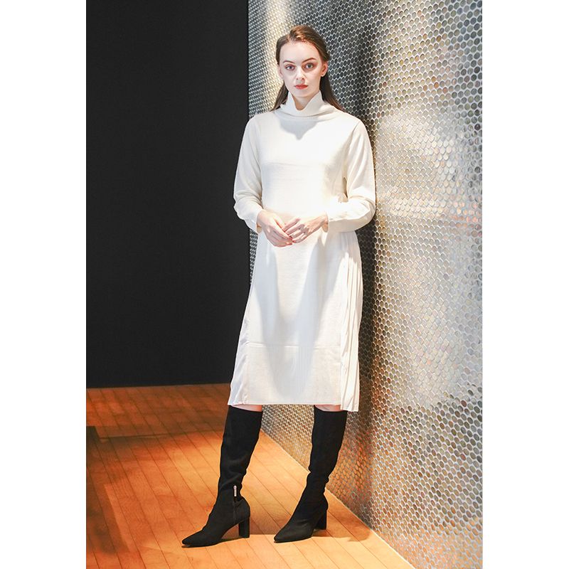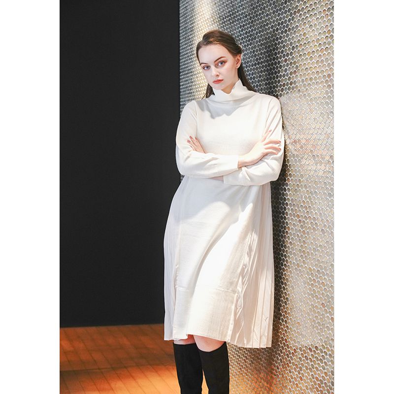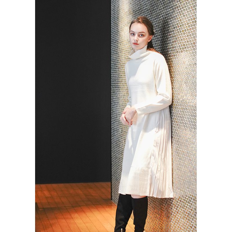 サイドプリーツニットドレス