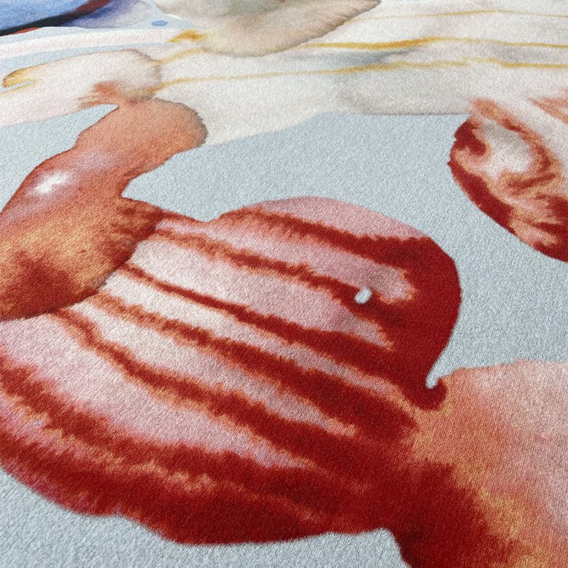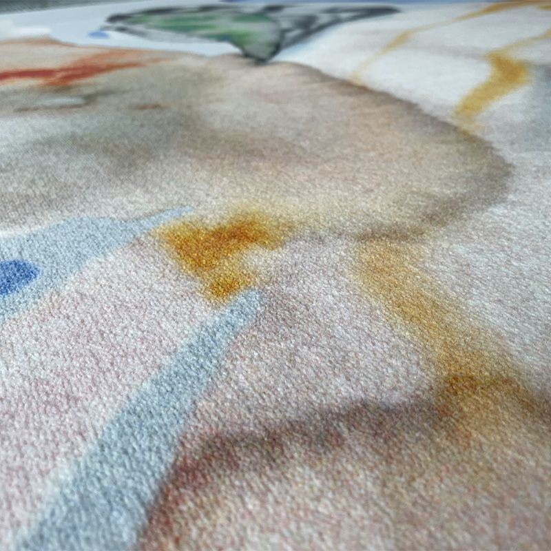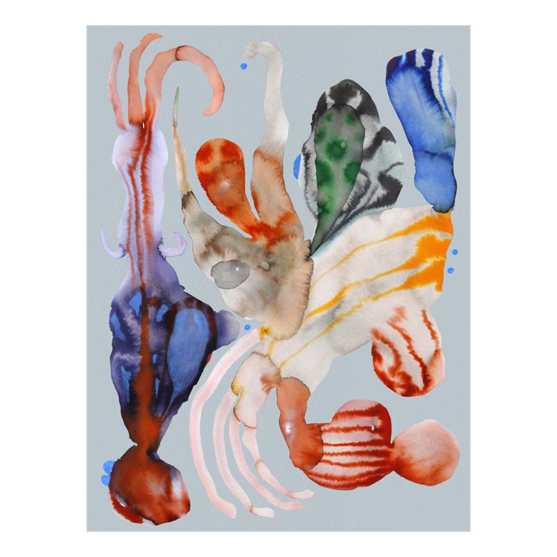 偶発的かつ抽象的なかたちが、魅惑的な.彩画の技法で描かれています。明るく柔らかな色使いは、自然が持っている多様性への賛歌を表しています。