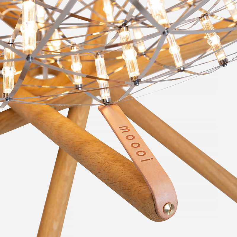 レイモンド2テンセグリティフロアランプは、工事不要で惑星のような光を空間に迎え入れられる、画期的な照明です。電源コードのない革新的な球体構造、テンセグリティ構造が生む視覚的驚き、木とステンレスの美しい融合、そしてコンセント式がもたらす自由な配置の可能性。