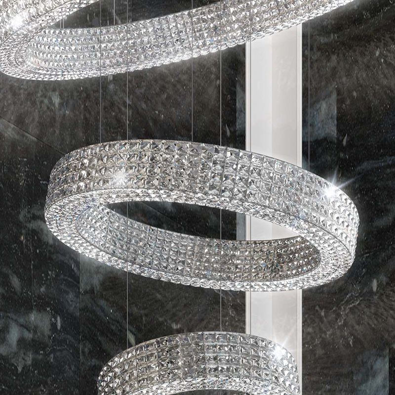 クリスタル・ガラスの効果で、内部のLED光源を様々な色、様々な角度に拡散します。どの方向からでも美しく煌めき、まるでリング状の光そのものが輝いているようです。