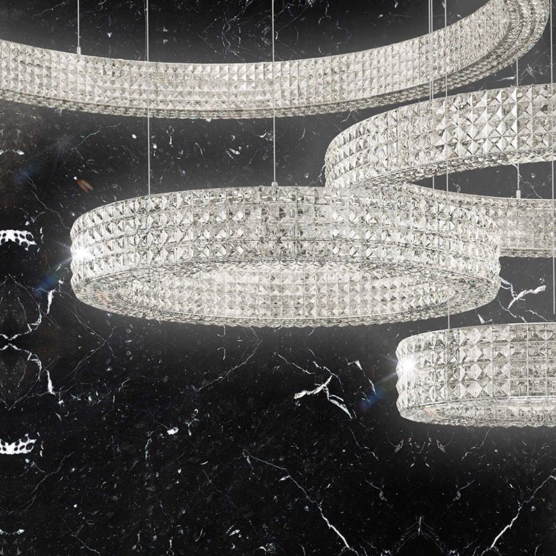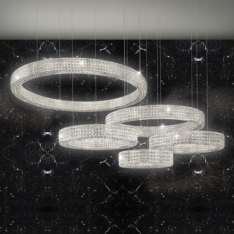 クリスタル・ガラスの効果で、内部のLED光源を様々な色、様々な角度に拡散します。どの方向からでも美しく煌めき、まるでリング状の光そのものが輝いているようです。