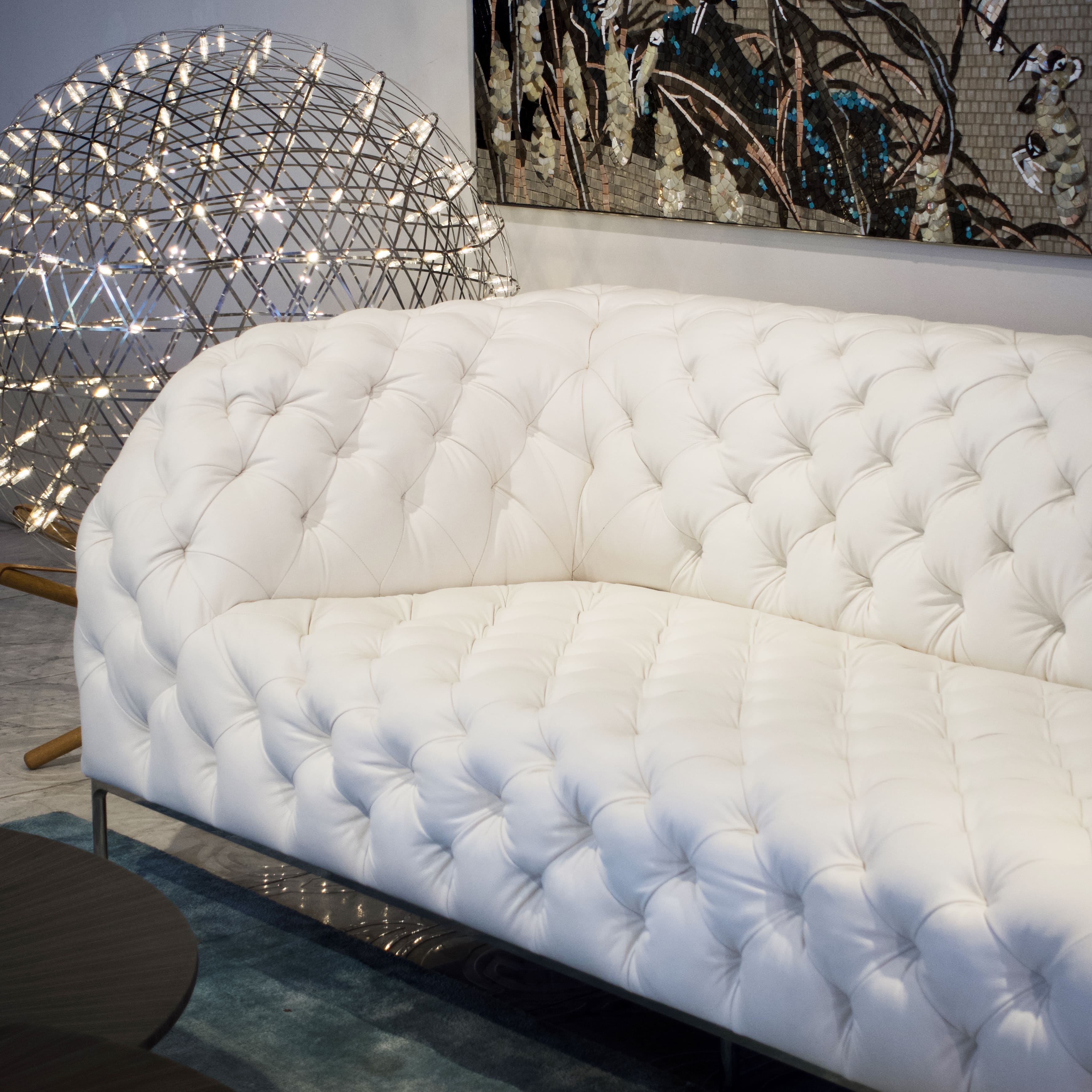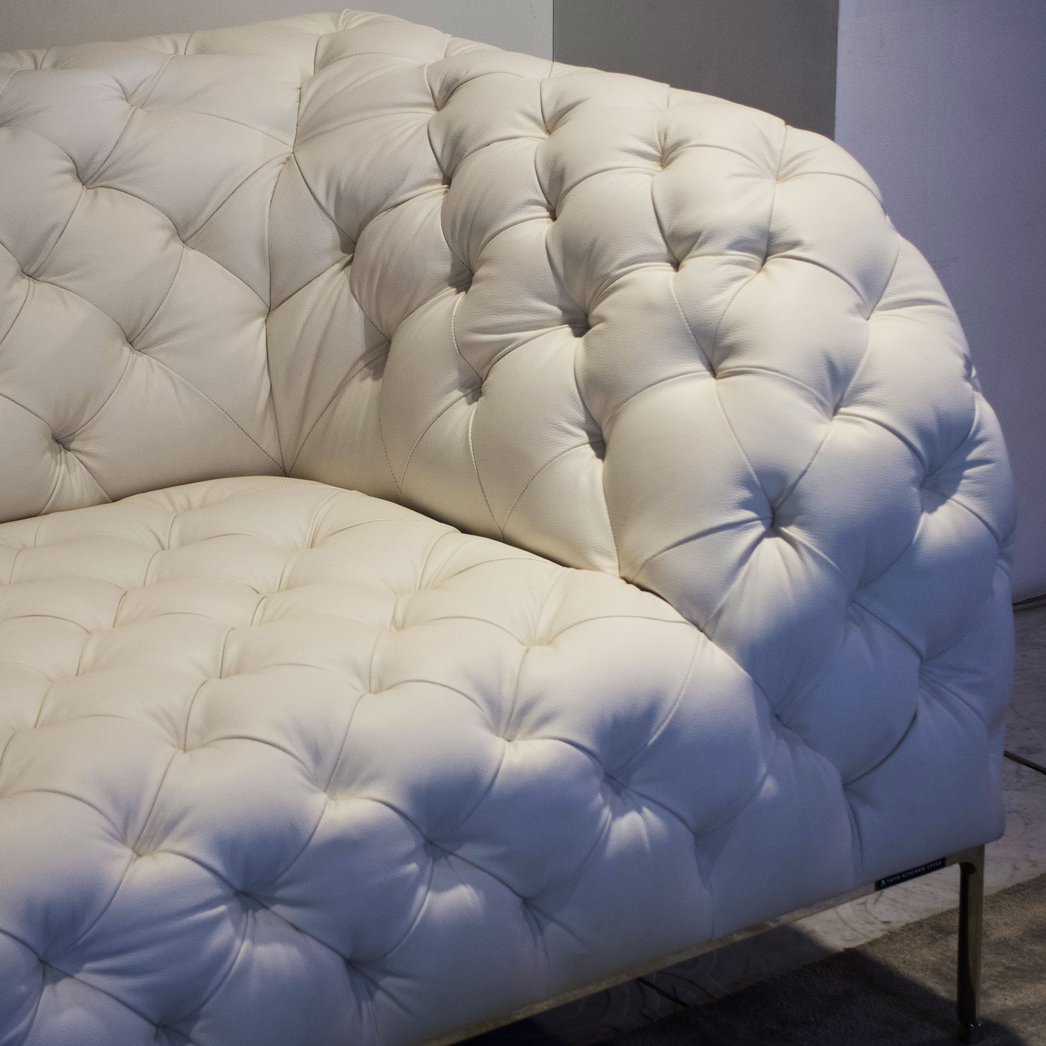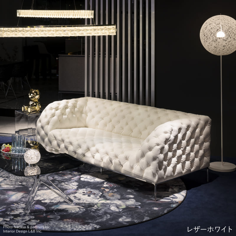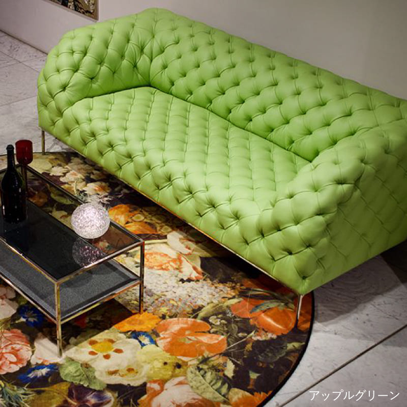 リズミカルにステッチ(タフティング加工)を施したクラシックなチェスターフィールド調のソファを、モダンにアレンジしたデザインです。