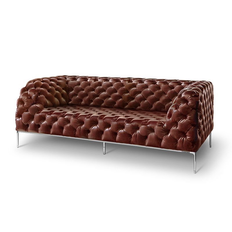 リズミカルにステッチ(タフティング加工)を施したクラシックなチェスターフィールド調のソファを、モダンにアレンジしたデザインです。