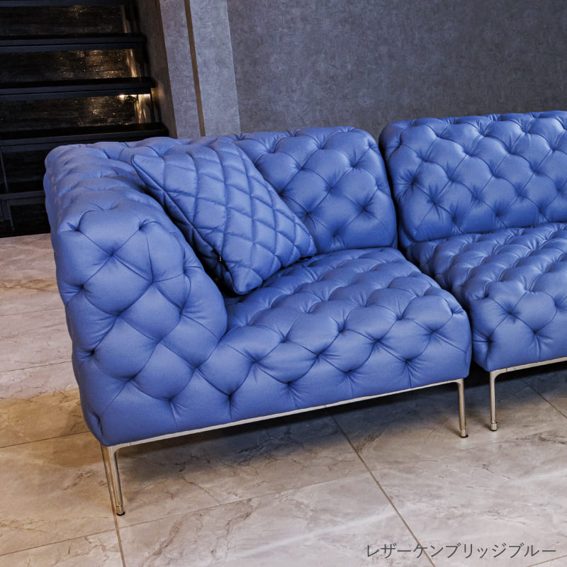 リズミカルにステッチ(タフティング加工)を施したクラシックなチェスターフィールド調のソファを、モダンにアレンジしたデザインです。