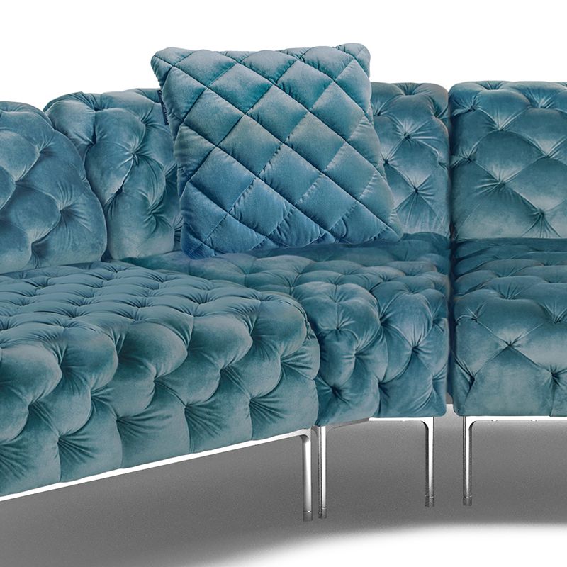 リズミカルにステッチ(タフティング加工)を施したクラシックなチェスターフィールド調のソファを、モダンにアレンジしたデザインです。