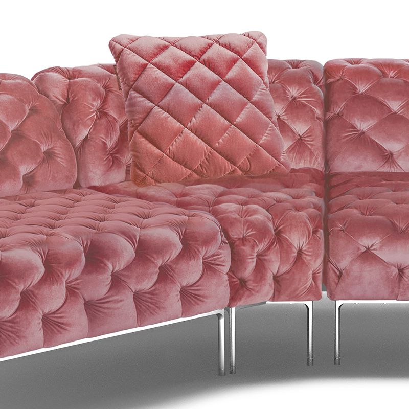 リズミカルにステッチ(タフティング加工)を施したクラシックなチェスターフィールド調のソファを、モダンにアレンジしたデザインです。