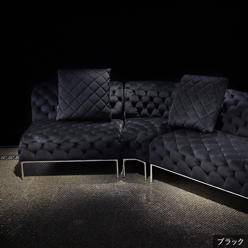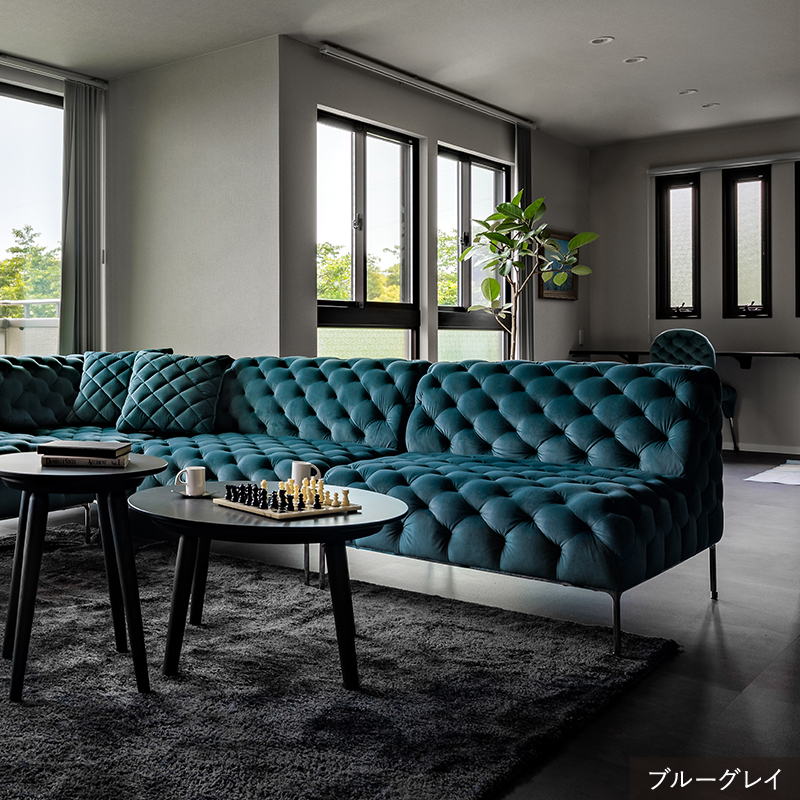 リズミカルにステッチ(タフティング加工)を施したクラシックなチェスターフィールド調のソファを、モダンにアレンジしたデザインです。