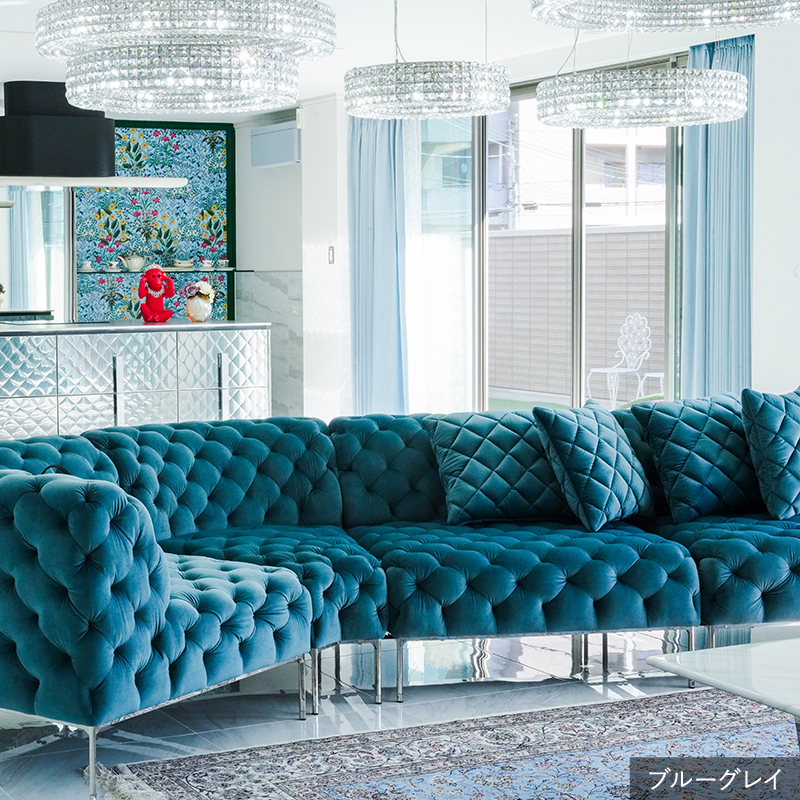 リズミカルにステッチ(タフティング加工)を施したクラシックなチェスターフィールド調のソファを、モダンにアレンジしたデザインです。
