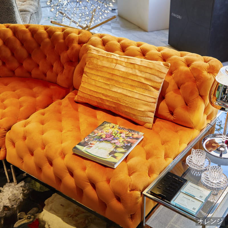 リズミカルにステッチ(タフティング加工)を施したクラシックなチェスターフィールド調のソファを、モダンにアレンジしたデザインです。