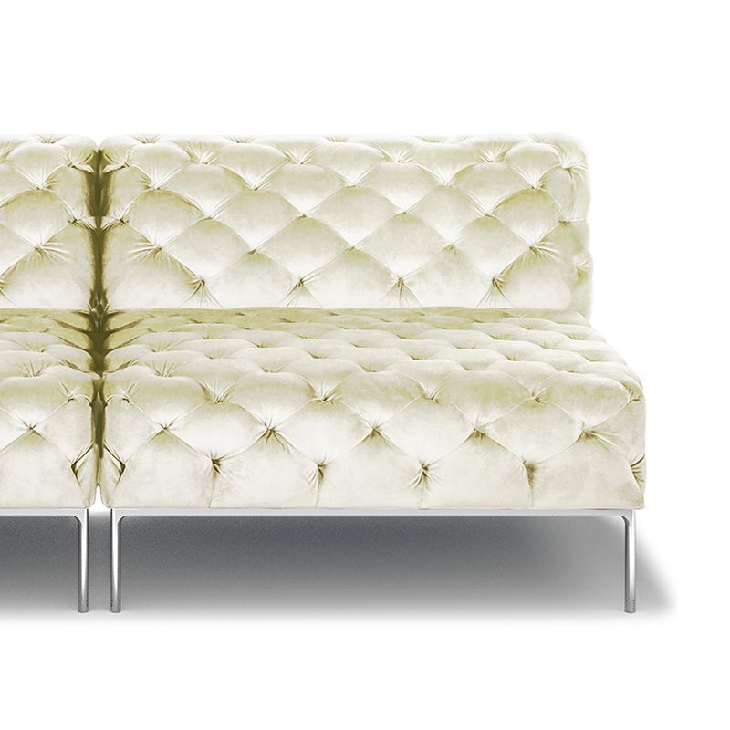 リズミカルにステッチ(タフティング加工)を施したクラシックなチェスターフィールド調のソファを、モダンにアレンジしたデザインです。