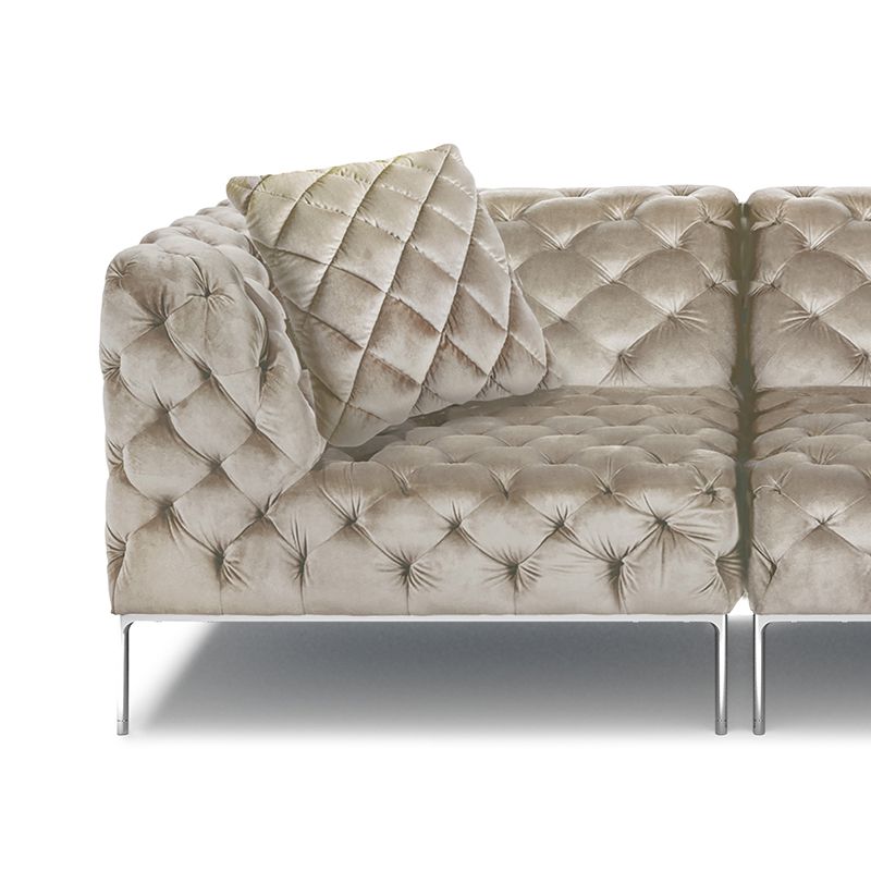 リズミカルにステッチ(タフティング加工)を施したクラシックなチェスターフィールド調のソファを、モダンにアレンジしたデザインです。