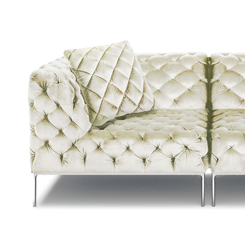 リズミカルにステッチ(タフティング加工)を施したクラシックなチェスターフィールド調のソファを、モダンにアレンジしたデザインです。