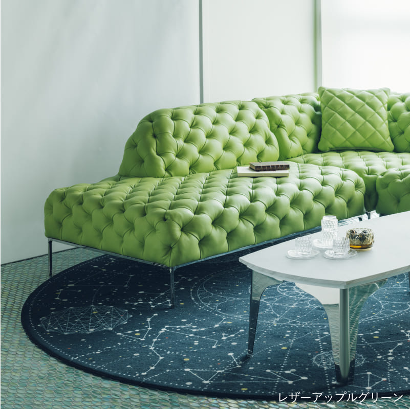 リズミカルにステッチ(タフティング加工)を施したクラシックなチェスターフィールド調のソファを、モダンにアレンジしたデザインです。