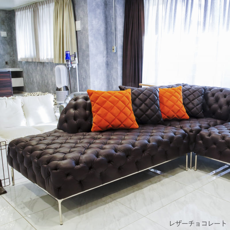リズミカルにステッチ(タフティング加工)を施したクラシックなチェスターフィールド調のソファを、モダンにアレンジしたデザインです。