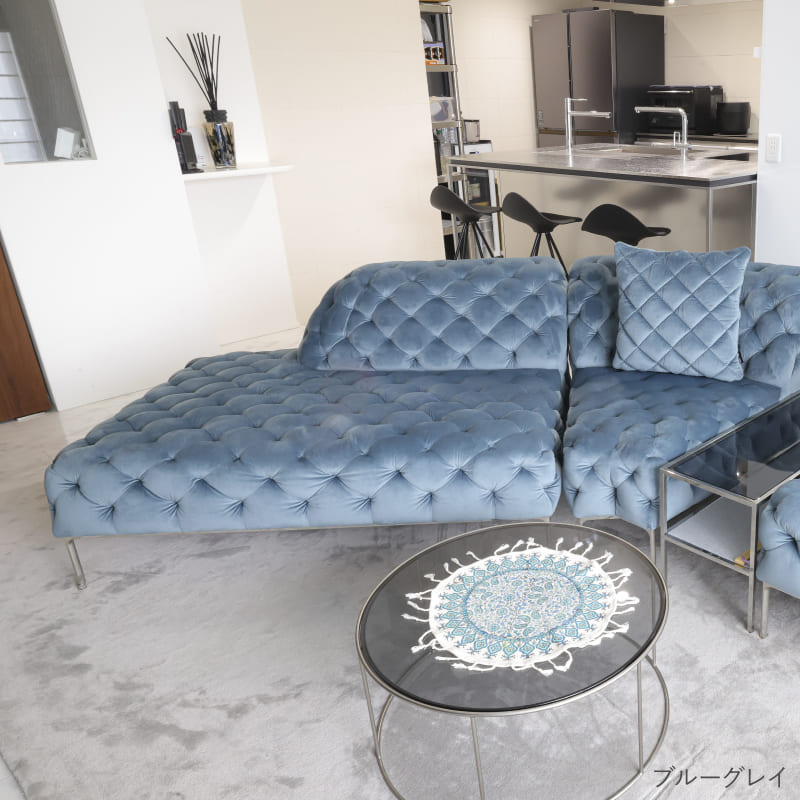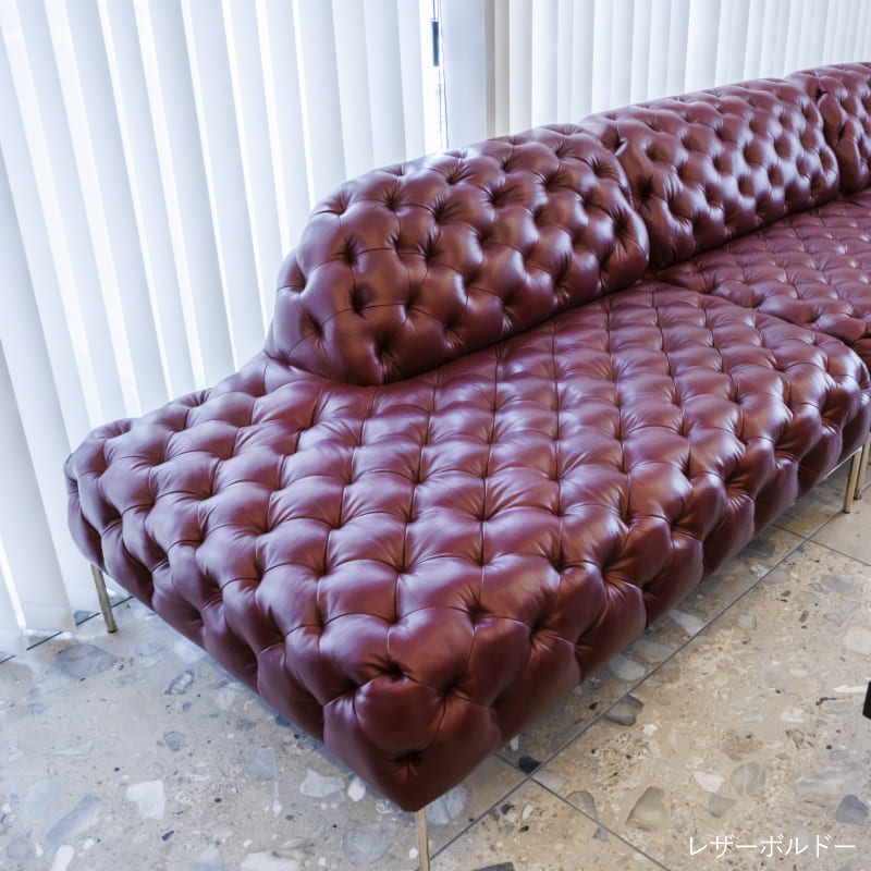リズミカルにステッチ(タフティング加工)を施したクラシックなチェスターフィールド調のソファを、モダンにアレンジしたデザインです。