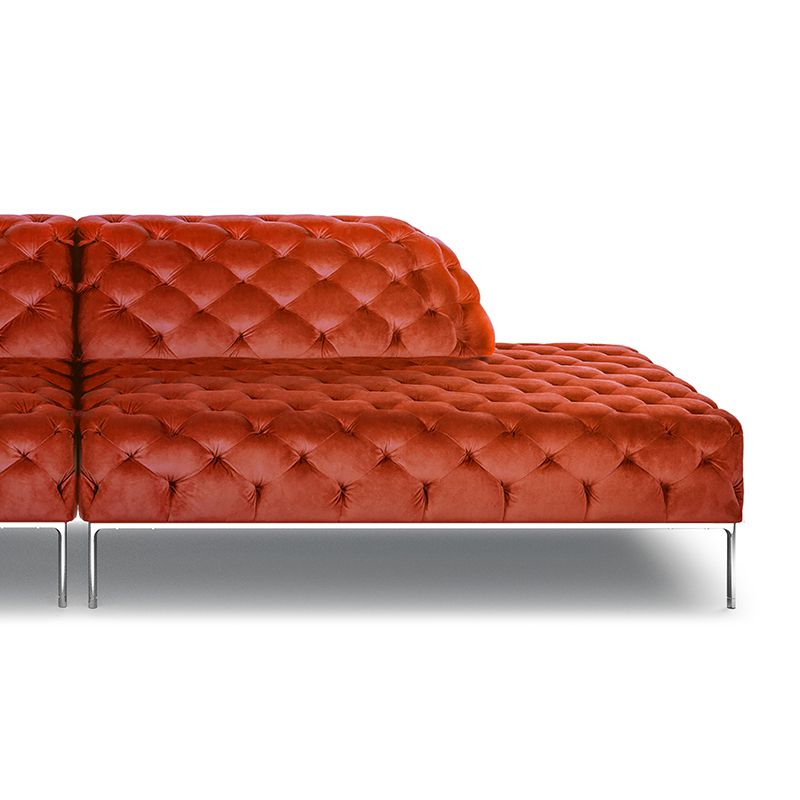 リズミカルにステッチ(タフティング加工)を施したクラシックなチェスターフィールド調のソファを、モダンにアレンジしたデザインです。