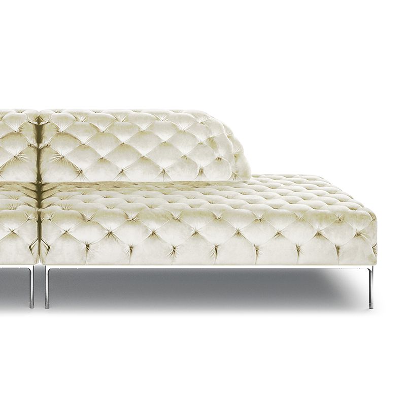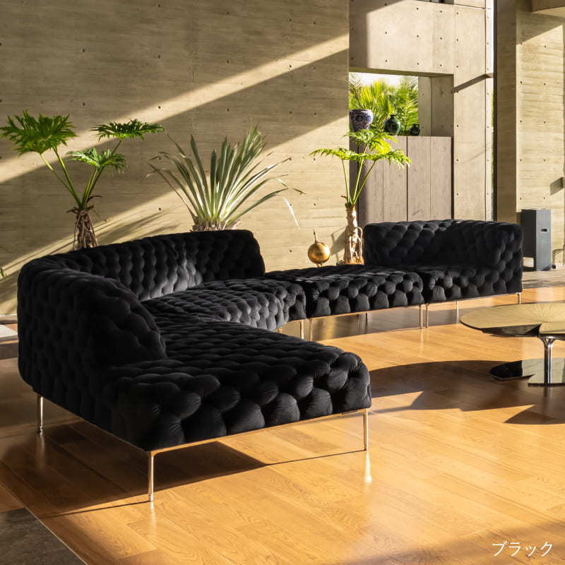 リズミカルにステッチ(タフティング加工)を施したクラシックなチェスターフィールド調のソファを、モダンにアレンジしたデザインです。