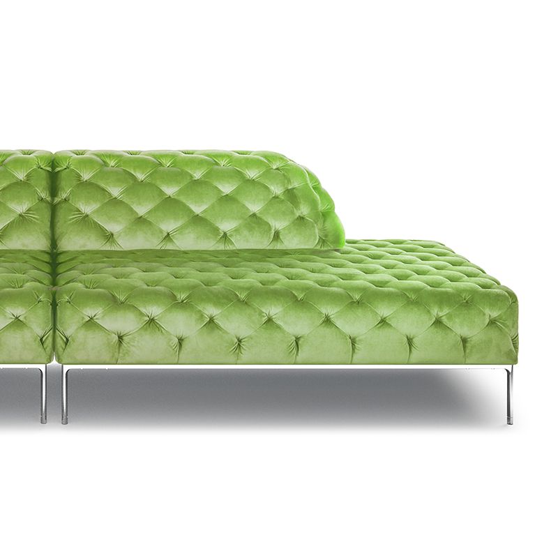 リズミカルにステッチ(タフティング加工)を施したクラシックなチェスターフィールド調のソファを、モダンにアレンジしたデザインです。