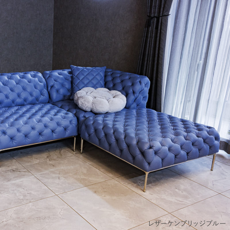 リズミカルにステッチ(タフティング加工)を施したクラシックなチェスターフィールド調のソファを、モダンにアレンジしたデザインです。