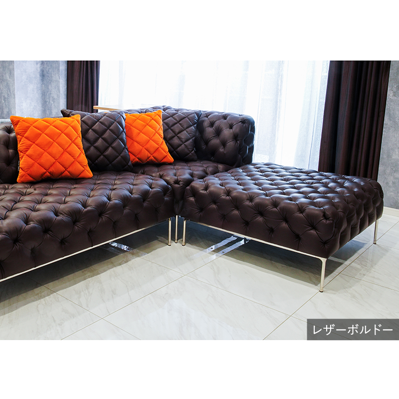 リズミカルにステッチ(タフティング加工)を施したクラシックなチェスターフィールド調のソファを、モダンにアレンジしたデザインです。