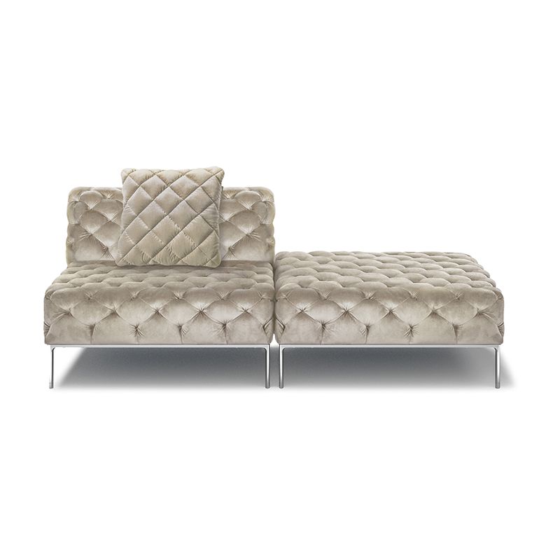リズミカルにステッチ(タフティング加工)を施したクラシックなチェスターフィールド調のソファを、モダンにアレンジしたデザインです。