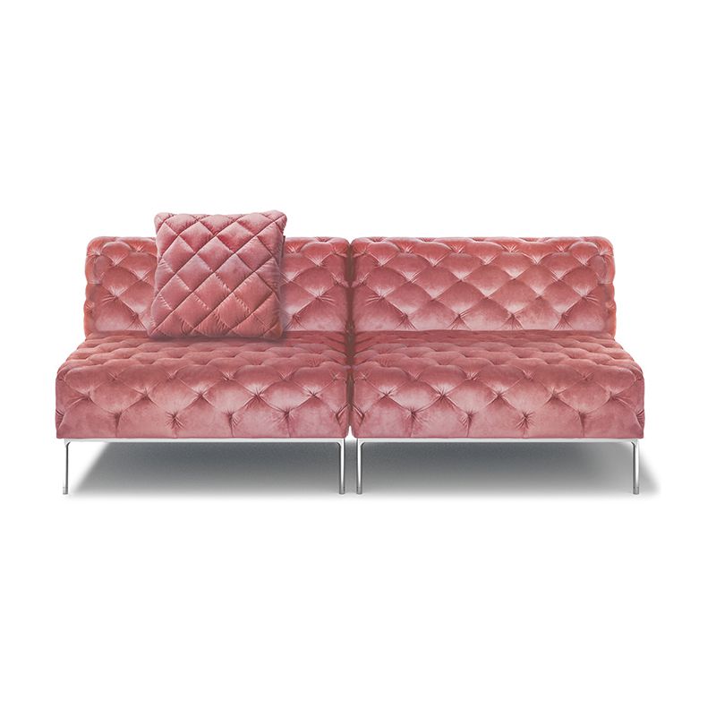 リズミカルにステッチ(タフティング加工)を施したクラシックなチェスターフィールド調のソファを、モダンにアレンジしたデザインです。