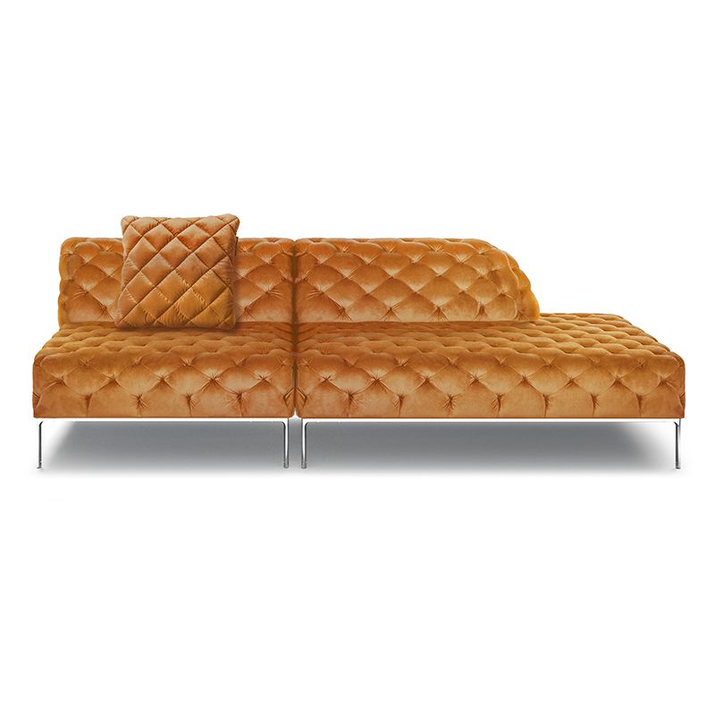 リズミカルにステッチ(タフティング加工)を施したクラシックなチェスターフィールド調のソファを、モダンにアレンジしたデザインです。