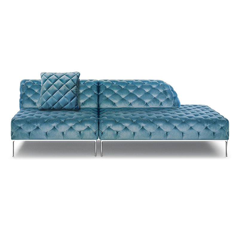 リズミカルにステッチ(タフティング加工)を施したクラシックなチェスターフィールド調のソファを、モダンにアレンジしたデザインです。