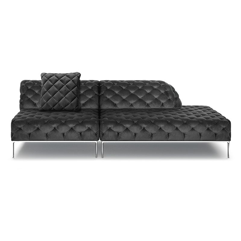リズミカルにステッチ(タフティング加工)を施したクラシックなチェスターフィールド調のソファを、モダンにアレンジしたデザインです。