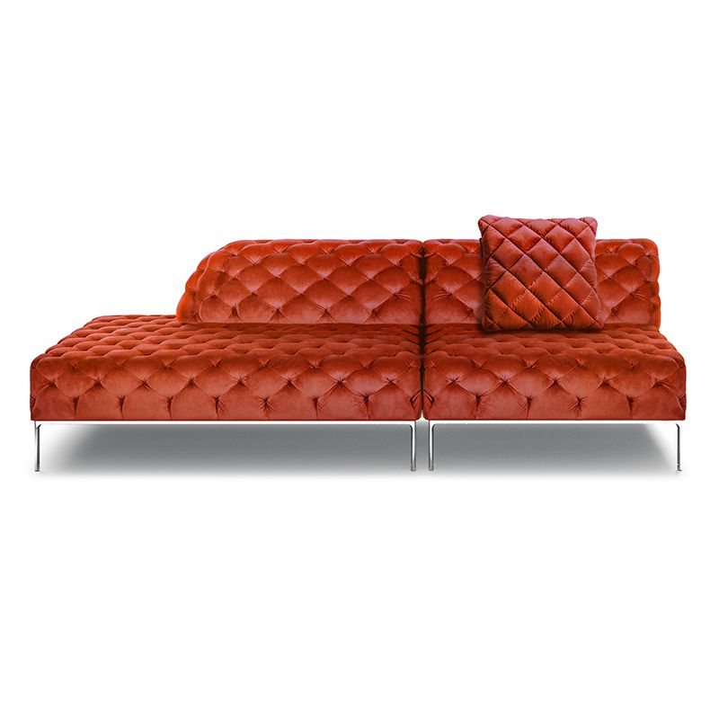 リズミカルにステッチ(タフティング加工)を施したクラシックなチェスターフィールド調のソファを、モダンにアレンジしたデザインです。