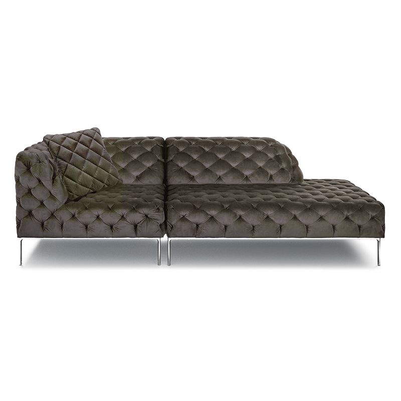 リズミカルにステッチ(タフティング加工)を施したクラシックなチェスターフィールド調のソファを、モダンにアレンジしたデザインです。