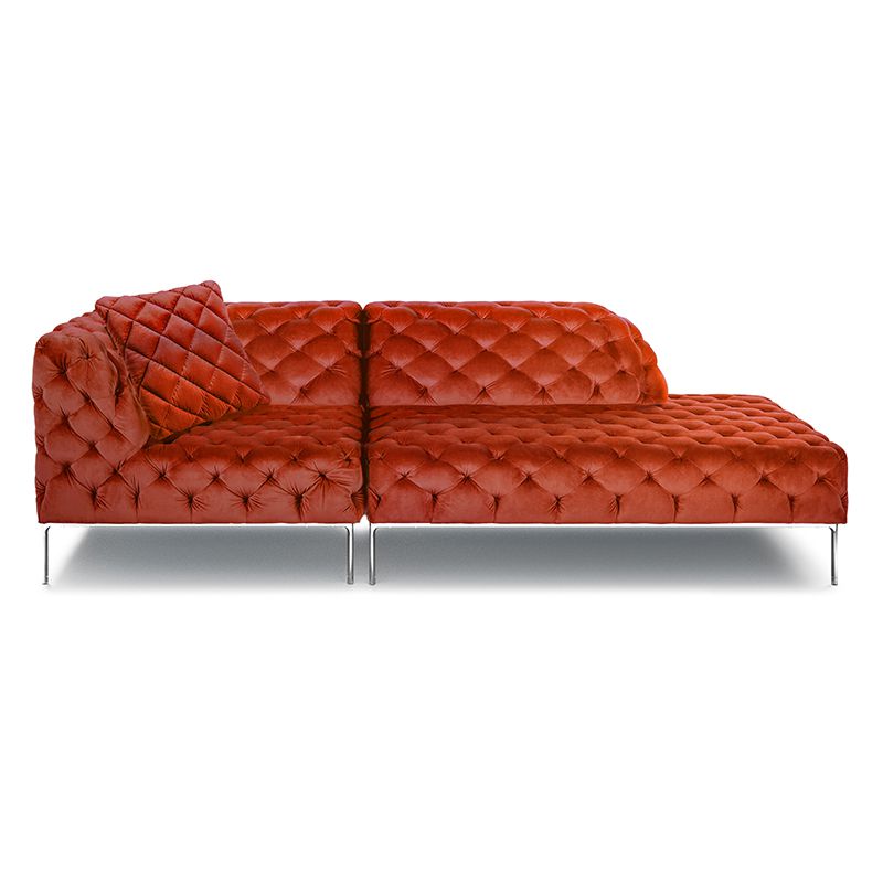 リズミカルにステッチ(タフティング加工)を施したクラシックなチェスターフィールド調のソファを、モダンにアレンジしたデザインです。