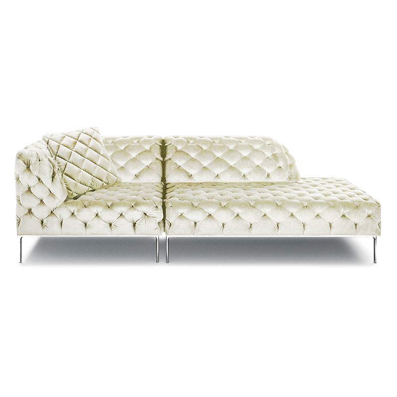 リズミカルにステッチ(タフティング加工)を施したクラシックなチェスターフィールド調のソファを、モダンにアレンジしたデザインです。