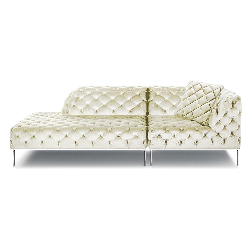 リズミカルにステッチ(タフティング加工)を施したクラシックなチェスターフィールド調のソファを、モダンにアレンジしたデザインです。