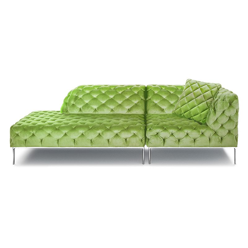 リズミカルにステッチ(タフティング加工)を施したクラシックなチェスターフィールド調のソファを、モダンにアレンジしたデザインです。