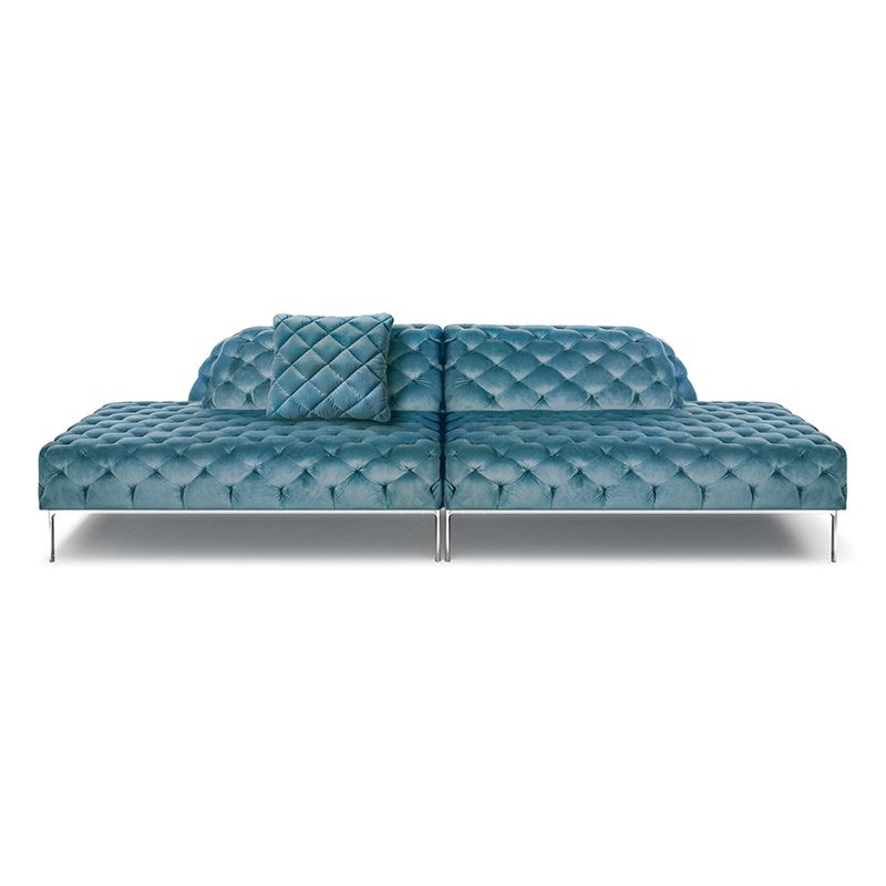 リズミカルにステッチ(タフティング加工)を施したクラシックなチェスターフィールド調のソファを、モダンにアレンジしたデザインです。