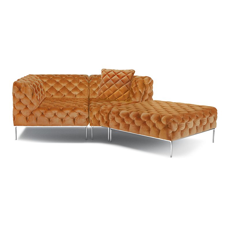 リズミカルにステッチ(タフティング加工)を施したクラシックなチェスターフィールド調のソファを、モダンにアレンジしたデザインです。