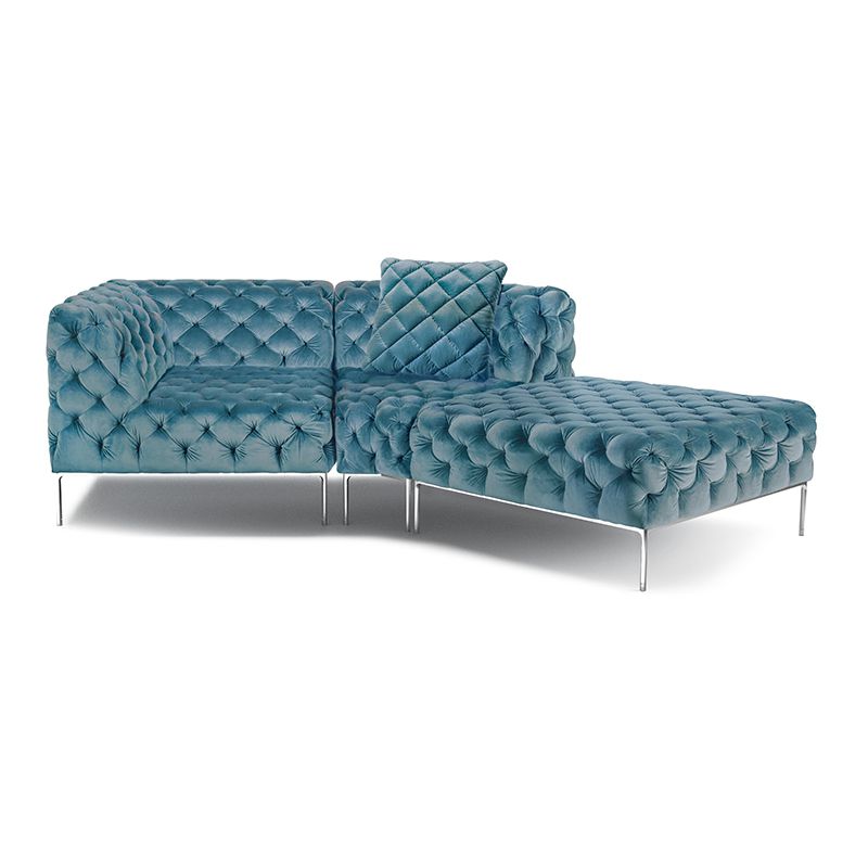 リズミカルにステッチ(タフティング加工)を施したクラシックなチェスターフィールド調のソファを、モダンにアレンジしたデザインです。