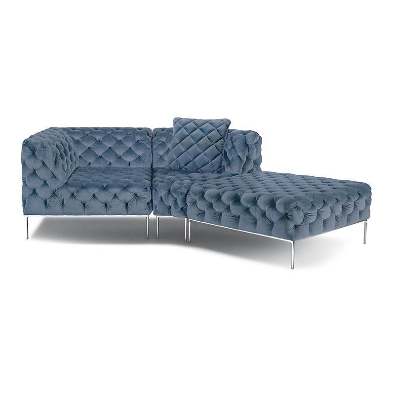 リズミカルにステッチ(タフティング加工)を施したクラシックなチェスターフィールド調のソファを、モダンにアレンジしたデザインです。